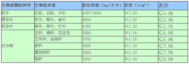 各種木屑顆粒的參數(shù)對比
